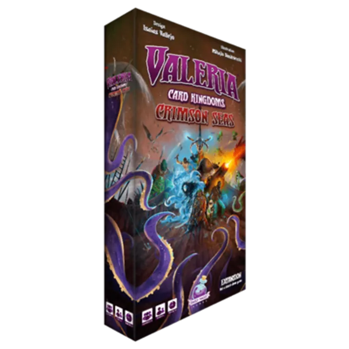 In Crimson Seas krijgt u kaarten aan nieuwe verre landen voorbij de grenzen van Valeria waarmee u handelsgoederen uit Araby kunt importeren om uw overwinningspunten te verhogen, Tomes of Great Power te kopen om uw hulpbronnenproductie te vergroten, Rescue Covered Nobles van de schurkachtige Amarynth Empire, en plunder de rijkdom van het vervloekte eiland. Pas op voor de monsters van de zee, hoewel ze, naarmate ze in kracht toenemen, chaos in heel Valeria zaaien.