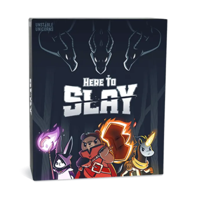 Here to Slay is een competitief fantasy-strategiekaartspel, van de makers van Unstable Unicorns, dat draait om het samenstellen van een groep Heroes en het verslaan van monsters (en soms ook het saboteren van je vrienden).